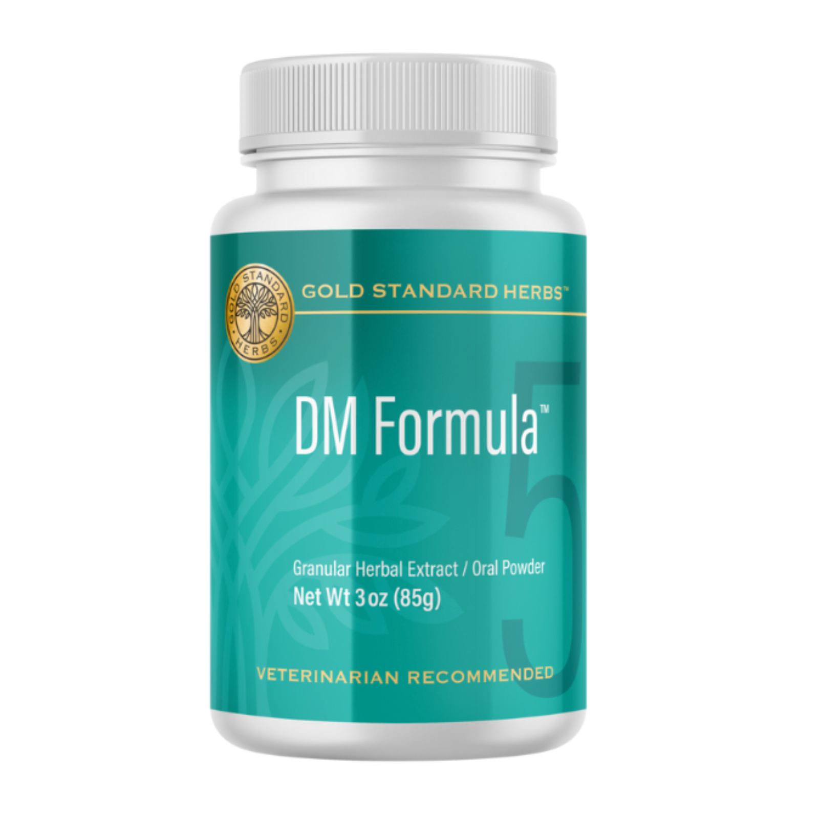 DM Formula is an organically grown concentrated herbal extract in powdered form. DM Formula acts more quickly and completely if your pet is fed a real food meat- and vegetable-based diet, and if they receive physical therapies like chiropractic, acupuncture, massage, PEMF and laser therapy by a practitioner knowledgeable in the unique pathophysiology of DM.