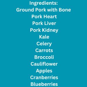 Ingredients: Turkey Meat, Heart, Liver, Zucchini Squash, Broccoli, Kale, Cauliflower, & Pumpkin.